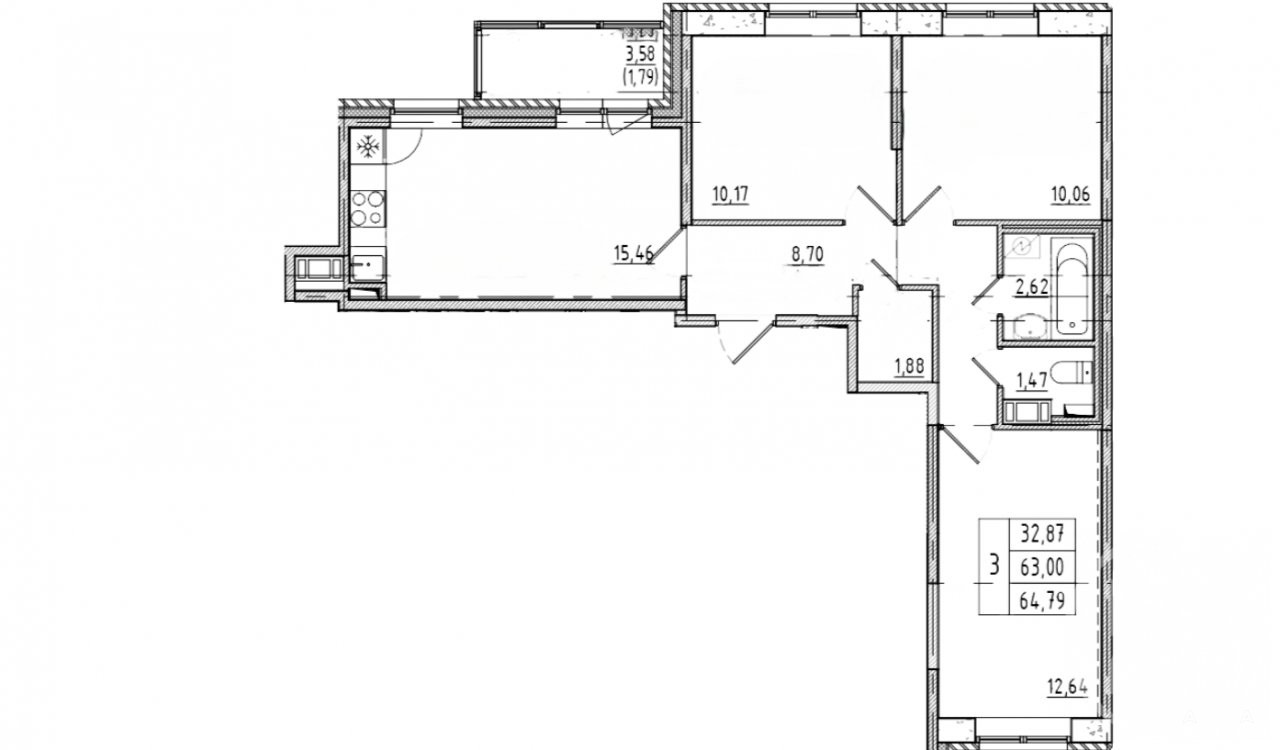 Три изолированные комнаты — удобно для семьи или работы из дома.