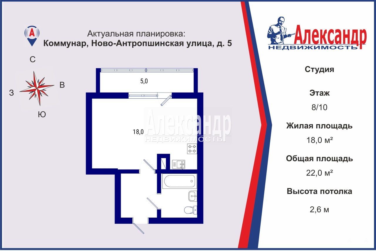 1705107 Отличная Студия в ЖК "Ново-Антропшино" в 5ти минутах пешком от ж/д. платформы Антропшино.