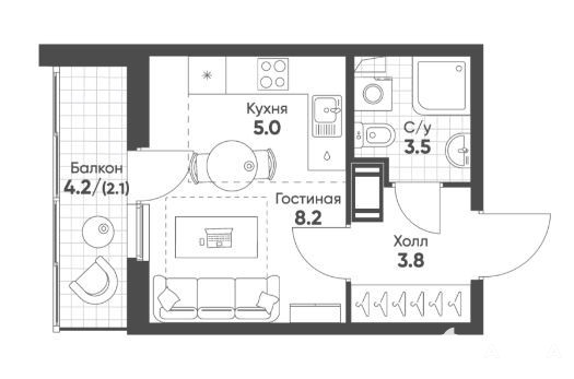 ✅ B пpодажe уютнaя и cвeтлaя квapтиpa студия S - 23 кв.м. в жилом комплексе Клюква.Парк.