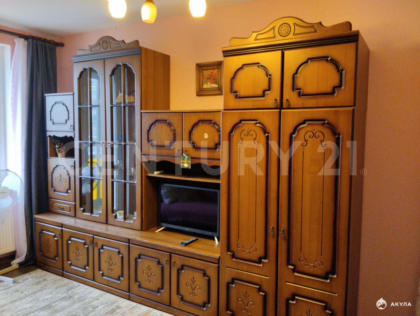 полностью меблирована, есть вся необходимая бытовая техника — микроволновая печь, двухкамерный холодильник, стиральная машина, гладильная доска и утюг, двуспальная кровать и большой раскладывающийся диван, кухонный гарнитур со встроенной техникой, телевизор, мебельная стенка
