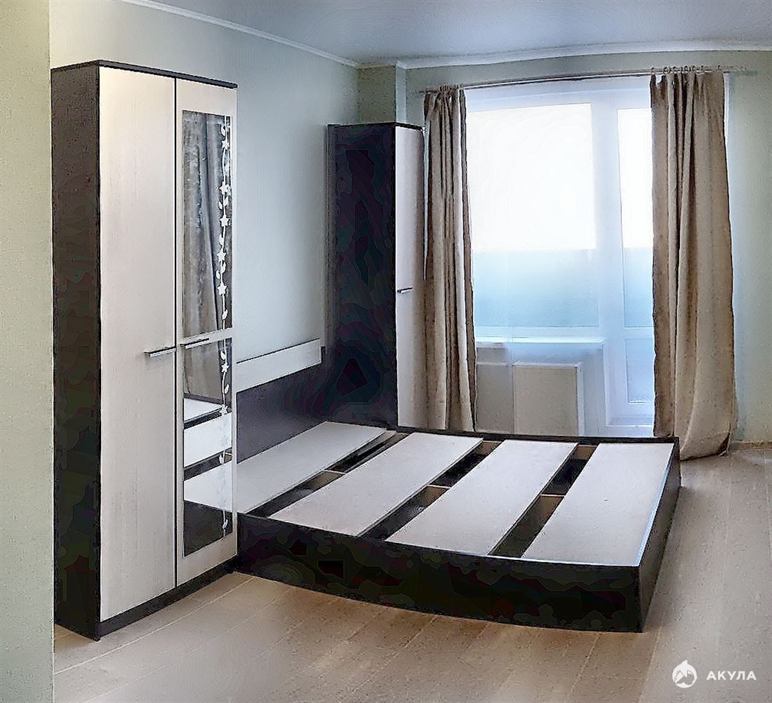 В комнате есть двухспальная кровать, шкафы, стол. На кухне плита, холодильник, вся необходимая мебель. Санузел совмещённый, с ванной, имеется стиральная машинка. Просторный открытый балкон.