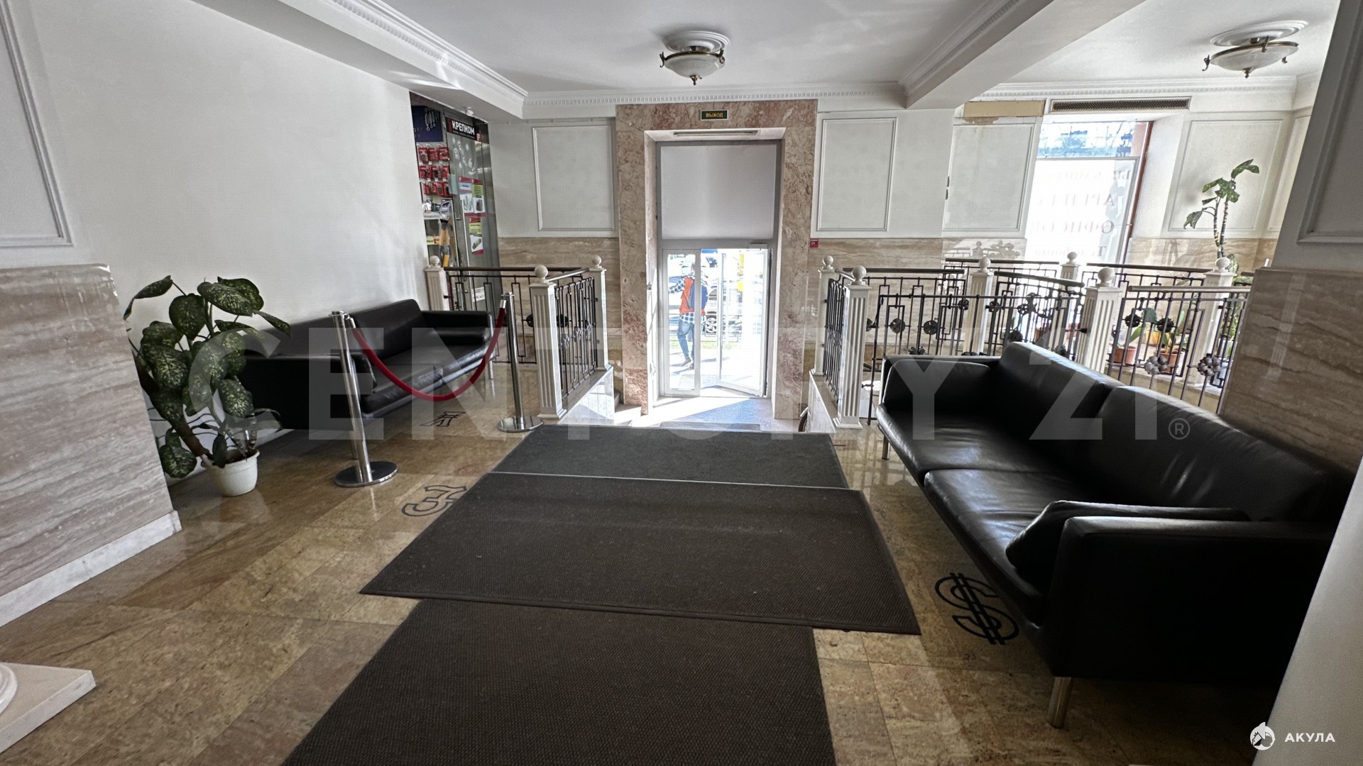 — Современная стильная отделка вестибюля, зона ожидания с мягкой мебелью;