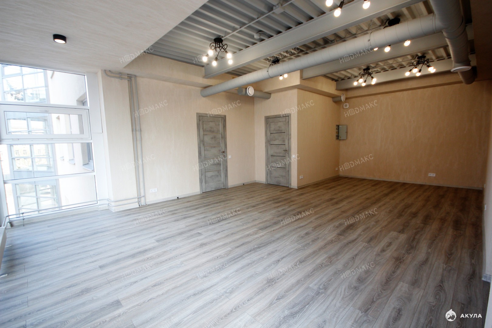 Помещение разделено на два, которые арендуют арендаторы.