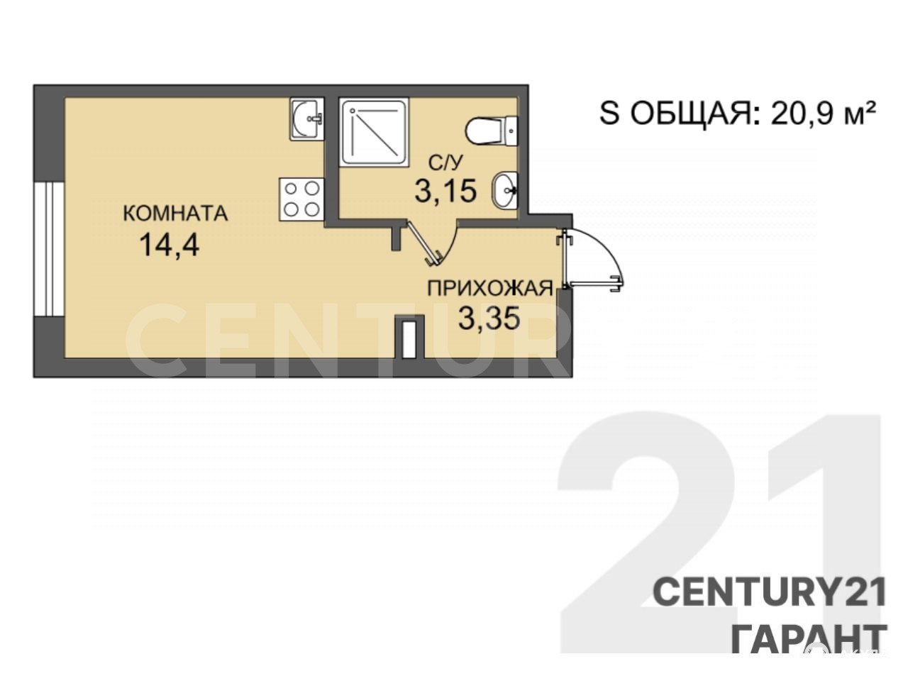 Площадь: 20, 9 м².Отделка: чистовая.Высота потолков: 2, 75м