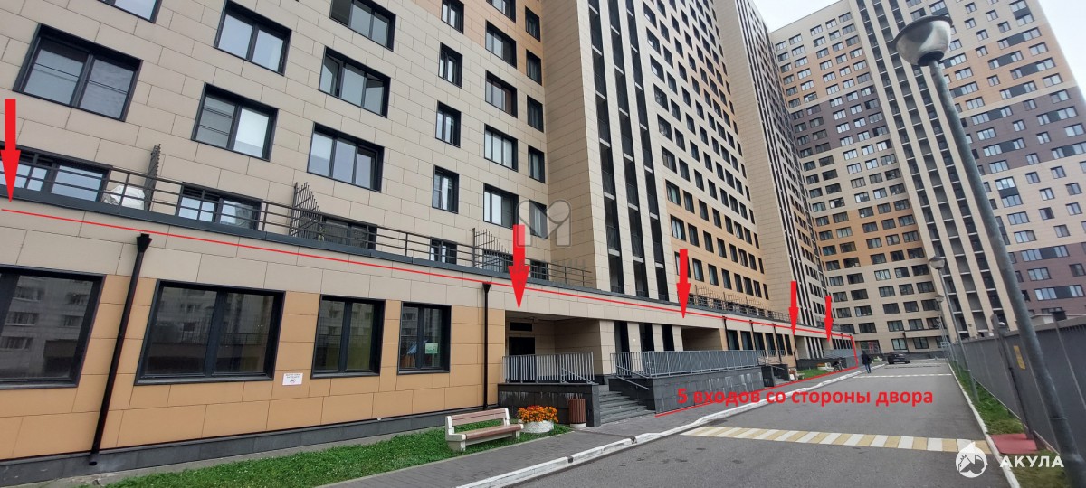 - 10 отдельных входов с улицы ( 4 - с фасада здания, 1 - с торца, 5 - выходы в закрытый двор);
