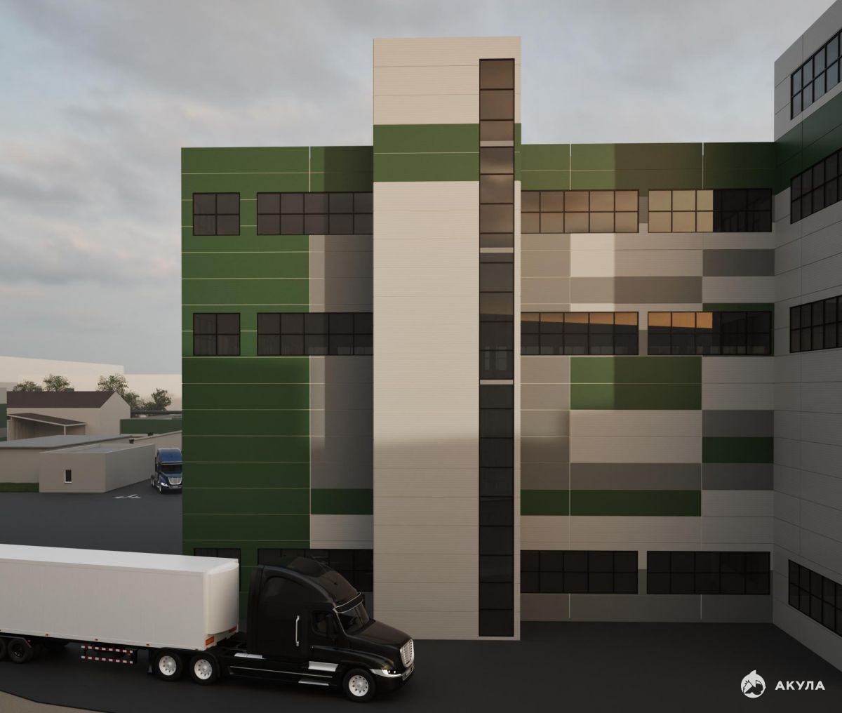 3 этажа производство, 7 этажей АБК