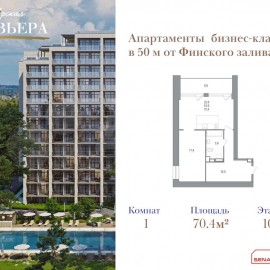 Продаются просторные 1-комнатные апартаменты у самого берега Финского залива. Вид на залив! Идеально для жизни и отдыха. Площадь 70, 4 м, высокие потолки до 3м, остекление в пол и глубокая лоджия-аэрарий: можно разместить два шезлонга, кофейный столик и наслаждаться свежим...