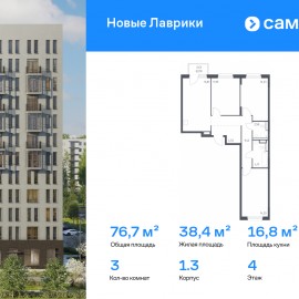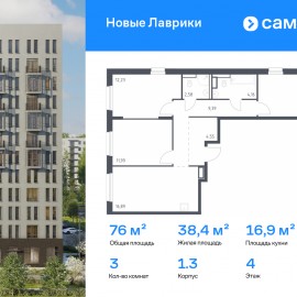Строим кварталы для жизни с заботой о будущем. Предлагается 3-комнатная квартира комфорт-класса 76, 71 кв.м в корпусе 1.3 на 4 этаже, в ЖК «Новые Лаврики» Квартира с предчистовой отделкой. Доступность дополнительных опций уточняйте у застройщика. Приобрести квартиру возможно...
