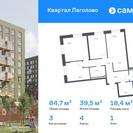 Строим кварталы для жизни с заботой о будущем. Предлагается 3-комнатная квартира комфорт-класса 84, 72 кв.м в корпусе 4 на 1 этаже, в ЖК «Квартал Лаголово» Квартира с предчистовой отделкой. Доступность дополнительных опций уточняйте у застройщика. Приобрести квартиру...