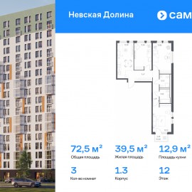 Строим кварталы для жизни с заботой о будущем. Предлагается 3-комнатная квартира комфорт-класса 72, 46 кв.м в корпусе 1.3 на 12 этаже, в ЖК «Невская Долина» Квартира с чистовой отделкой. Доступность дополнительных опций уточняйте у застройщика. Приобрести квартиру возможно по...
