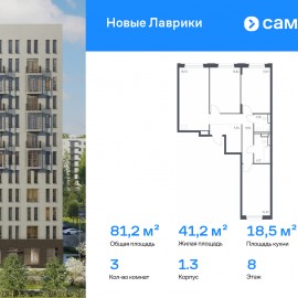 Строим кварталы для жизни с заботой о будущем. Предлагается 3-комнатная квартира комфорт-класса 81, 21 кв.м в корпусе 1.3 на 8 этаже, в ЖК «Новые Лаврики» Квартира с предчистовой отделкой. Доступность дополнительных опций уточняйте у застройщика. Приобрести квартиру возможно...