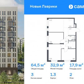 Строим кварталы для жизни с заботой о будущем. Предлагается 3-комнатная квартира комфорт-класса 64, 52 кв.м в корпусе 1.3 на 2 этаже, в ЖК «Новые Лаврики» Квартира с предчистовой отделкой. Доступность дополнительных опций уточняйте у застройщика. Приобрести квартиру возможно...