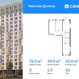 Строим кварталы для жизни с заботой о будущем. Предлагается 3-комнатная квартира комфорт-класса 72, 46 кв.м в корпусе 1.3 на 10 этаже, в ЖК «Невская Долина» Квартира с чистовой отделкой. Доступность дополнительных опций уточняйте у застройщика. Приобрести квартиру возможно по...