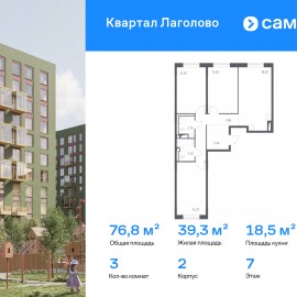 Строим кварталы для жизни с заботой о будущем. Предлагается 3-комнатная квартира комфорт-класса 76, 77 кв.м в корпусе 2 на 7 этаже, в ЖК «Квартал Лаголово» Квартира с чистовой отделкой. Доступность дополнительных опций уточняйте у застройщика. Приобрести квартиру возможно по...
