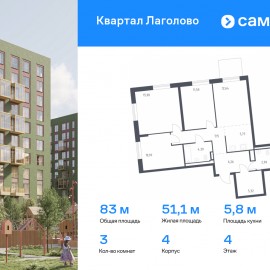Строим кварталы для жизни с заботой о будущем. Предлагается 3-комнатная квартира комфорт-класса 82, 98 кв.м в корпусе 4 на 4 этаже, в ЖК «Квартал Лаголово» Квартира с предчистовой отделкой. Доступность дополнительных опций уточняйте у застройщика. Приобрести квартиру...