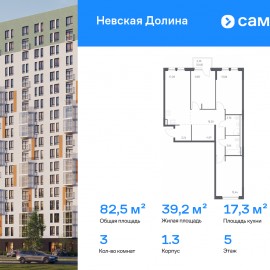 Строим кварталы для жизни с заботой о будущем. Предлагается 3-комнатная квартира комфорт-класса 82, 5 кв.м в корпусе 1.3 на 5 этаже, в ЖК «Невская Долина» Квартира с чистовой отделкой. Доступность дополнительных опций уточняйте у застройщика. Приобрести квартиру возможно по...