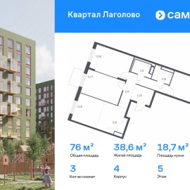 Строим кварталы для жизни с заботой о будущем. Предлагается 3-комнатная квартира комфорт-класса 76, 04 кв.м в корпусе 4 на 5 этаже, в ЖК «Квартал Лаголово» Квартира с чистовой отделкой. Доступность дополнительных опций уточняйте у застройщика. Приобрести квартиру возможно по...