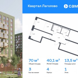 Строим кварталы для жизни с заботой о будущем. Предлагается 3-комнатная квартира комфорт-класса 69, 95 кв.м в корпусе 4 на 1 этаже, в ЖК «Квартал Лаголово» Квартира с чистовой отделкой. Доступность дополнительных опций уточняйте у застройщика. Приобрести квартиру возможно по...