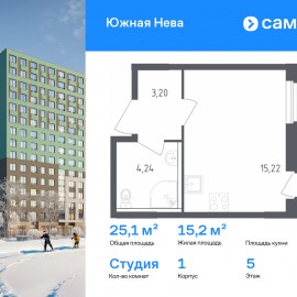 Строим кварталы для жизни с заботой о будущем. Предлагается квартира студия комфорт-класса 25, 08 кв.м в корпусе 1 на 5 этаже, в ЖК «Южная Нева» Квартира с чистовой отделкой. Доступность дополнительных опций уточняйте у застройщика. Приобрести квартиру возможно по...