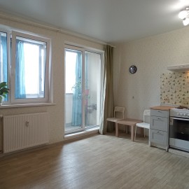 Большая и светлая квартира-студия в доме 2014 года постройки. ПО ДОКУМЕНТАМ: - Один взрослый собственник (27 лет); - В собственности на основании договора приватизации от 2017 года; - Мама отказник, нотариальное согласие на отказ от приватизации есть, на сделке будет; - В квартире...
