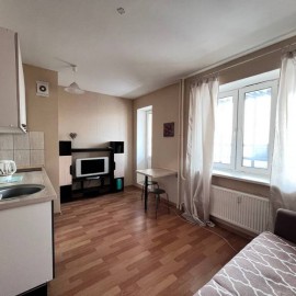 Арт. 67357930. Сдается квартира-студия на 13-ом этаже с красивым видом на речку на длительный срок. Рядом находятся магазин с продуктами и красно-белое, так же в пешой доступности расположена школа и садик. С Животными нельзя. Обязательно наличие паспорта РФ.