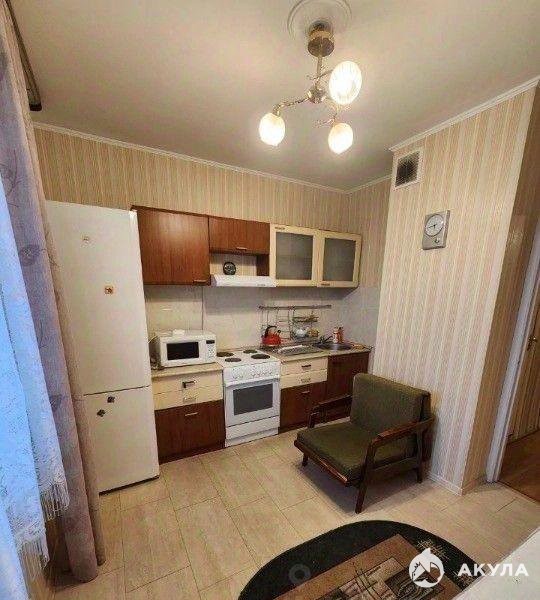 Полностью оборудованная кухня: холодильник, плита с 4 конфорками, духовка, микроволновка, электрический чайник, небольшой набор посуды.