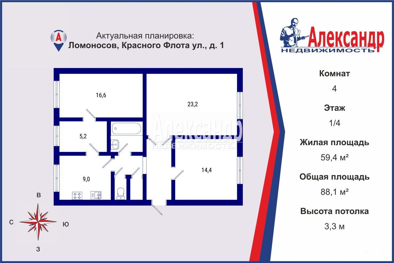 1699173 Предлагается к продаже просторная четырехкомнатная квартира в центре г. Ломоносов. Квартира двухсторонняя, комнаты изолированные, толстые стены, высокие потолки. Рядом благоустроенный зеленый двор с детской площадкой. Вся инфраструктура в шаговой доступности, до ж/д станции `Ораниенбаум` десять минут пешком. В квартире требуется ремонт, два взрослых собственника.