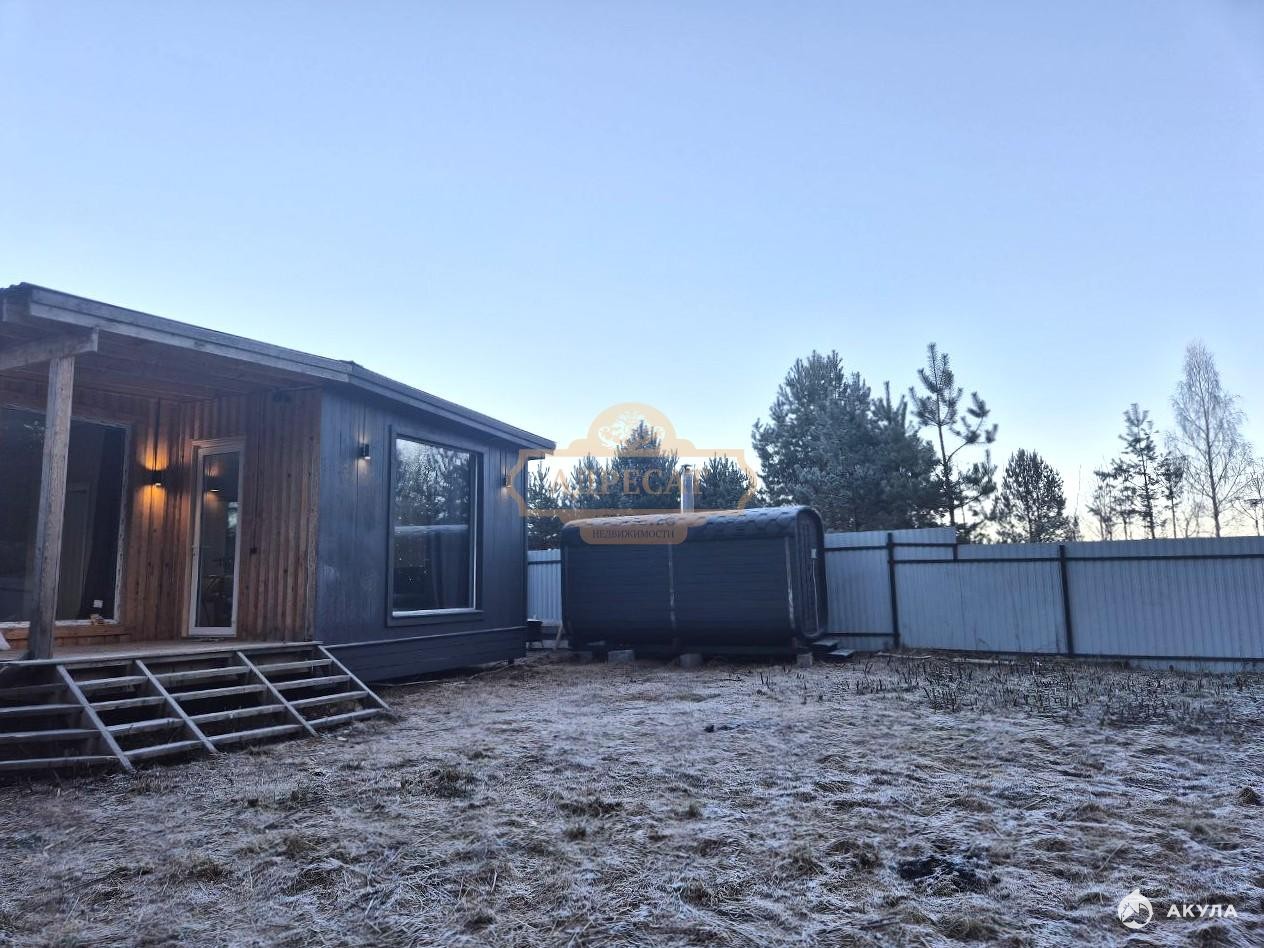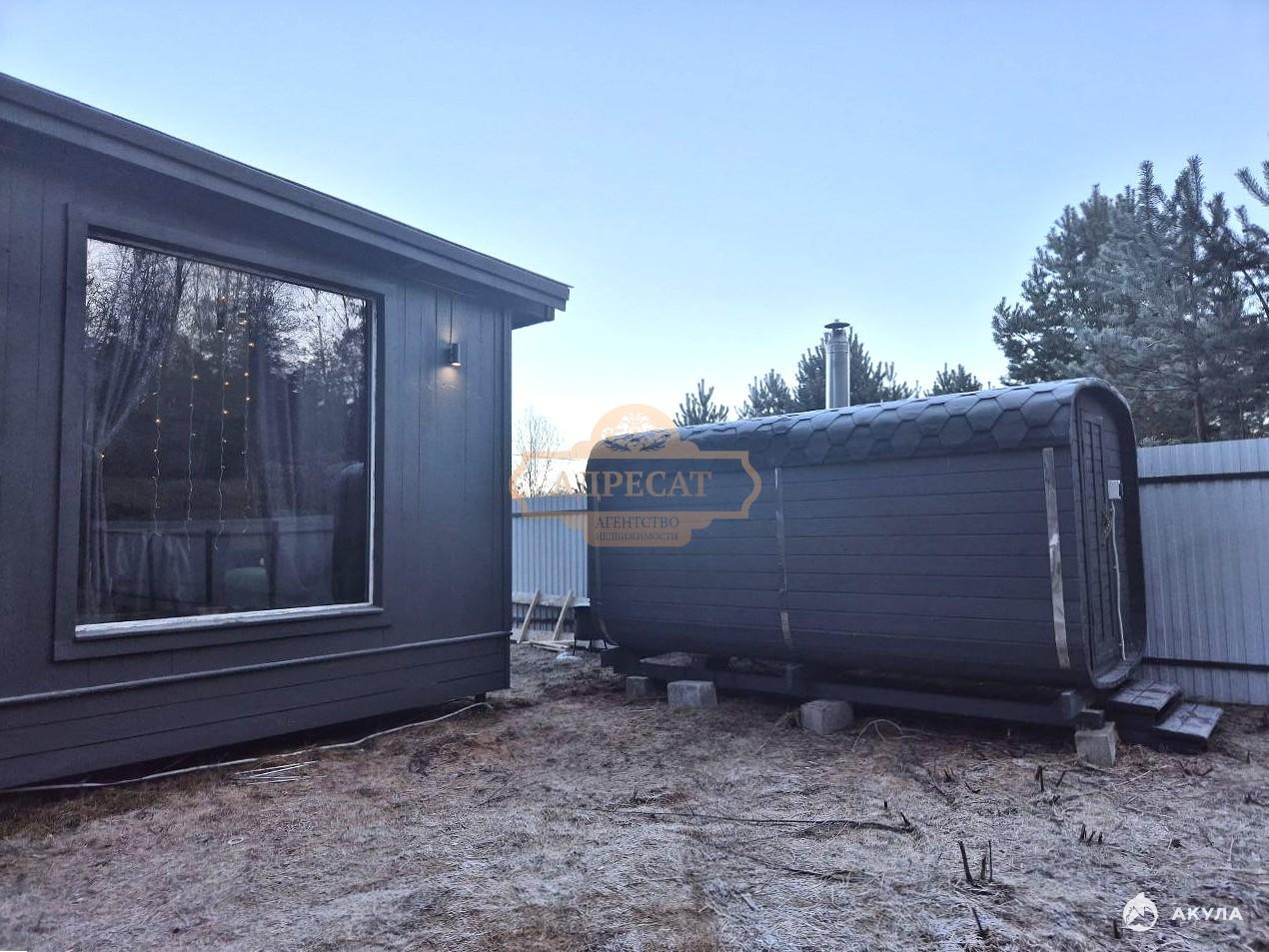 В доме высокие потолки и панорамные окна — много света и ощущение простора. Кухня-гостиная, комната и санузел, всё эргономично и продуманно. Во всем доме установлены теплые полы и электрические конвекторы. Коммуникации подведены: электричество 15 кВт, вода - скважина 12 м, канализация - септик. Дом построен по каркасной технологии, утепление 200 мм, фундамент - винтовые сваи. На участке установлена баня. В доме выполнена полная отделка, вся мебель и техника остаются новым собственникам. Вы сразу можете заехать и жить или сдавать в аренду. На участке есть место для строительства еще одного дома.