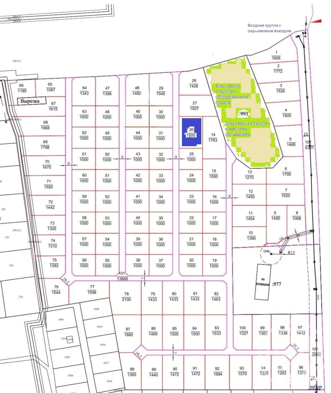 - Площадь участка