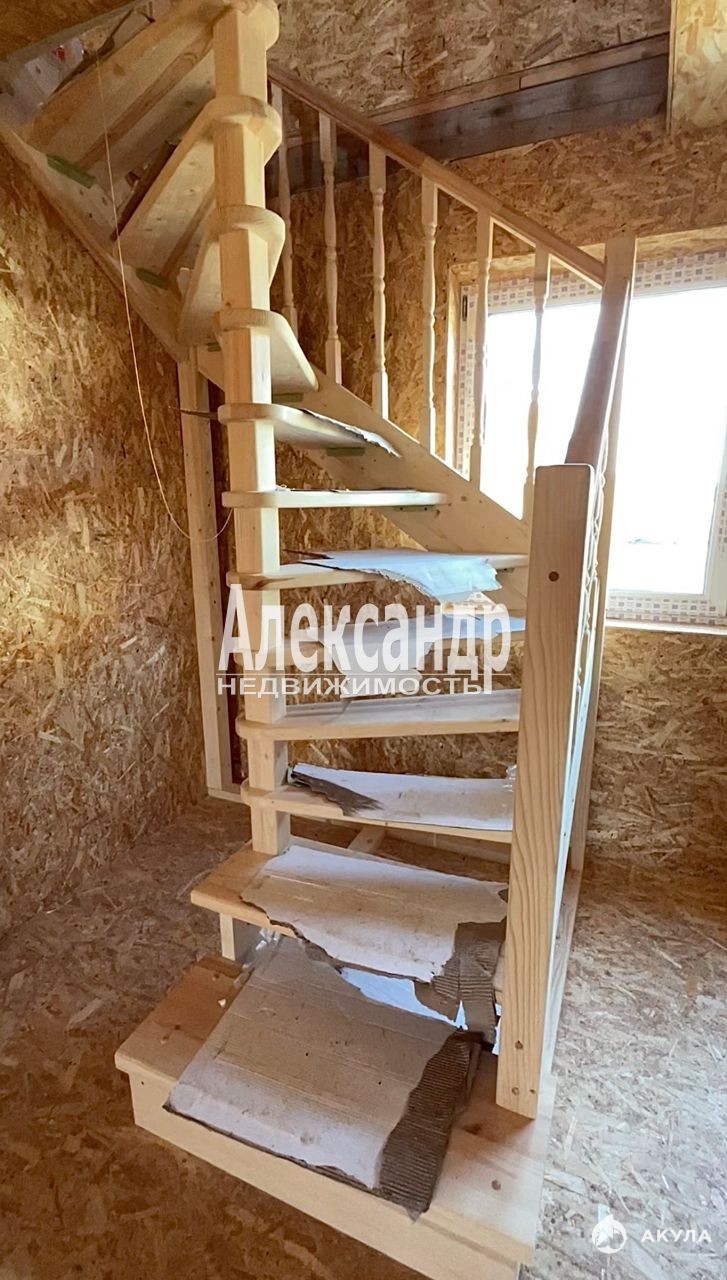 - На 2-ой этаж ведет винтовая деревянная лестница с балясинами из натурального дерева. На 2-ом этаже - просторная светлая комната.
