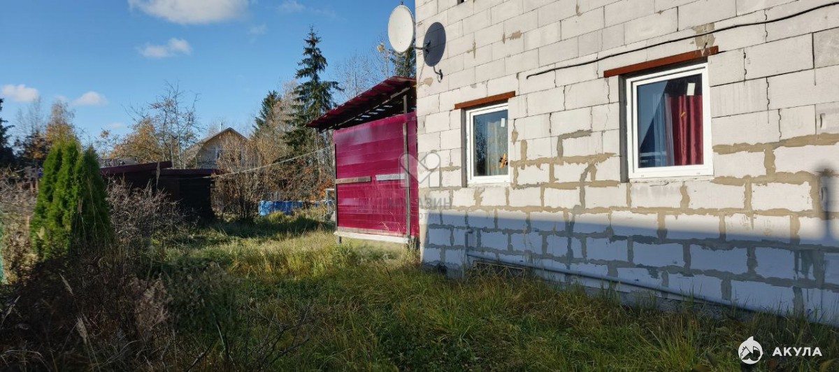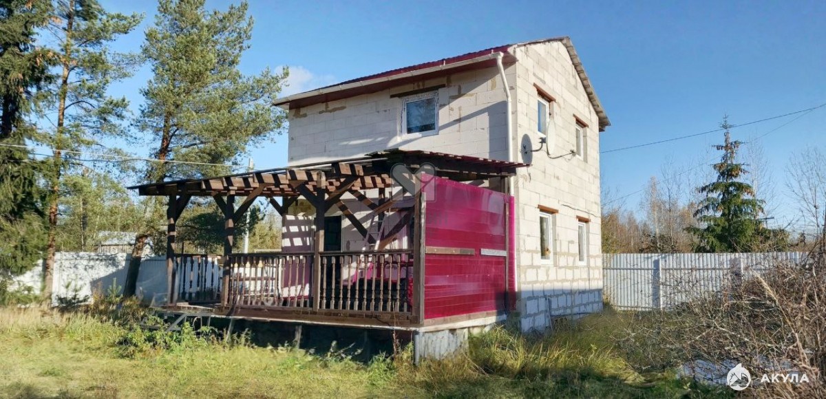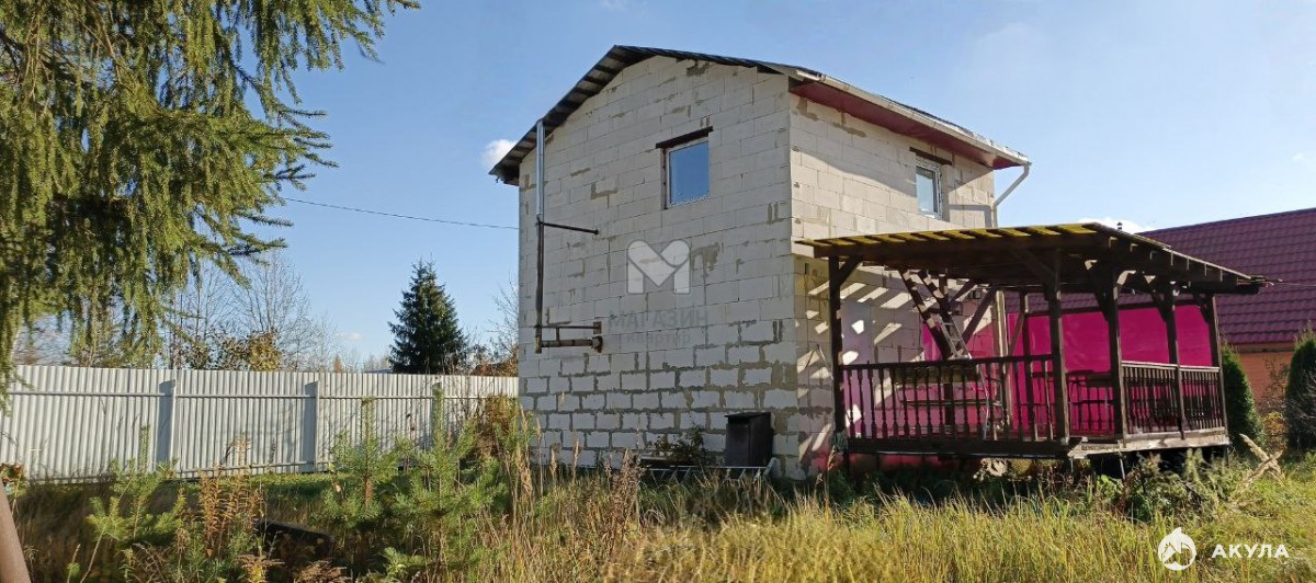 Дом 80 м2 построен из газобетона на ленточном фундаменте 1, 5 м глубиной с пристроенной верандой 18 м2 (на сваях). В доме кухня, гостиная с печью и 2 спальни на втором этаже. Вода и электричество заведены, газ от баллона.