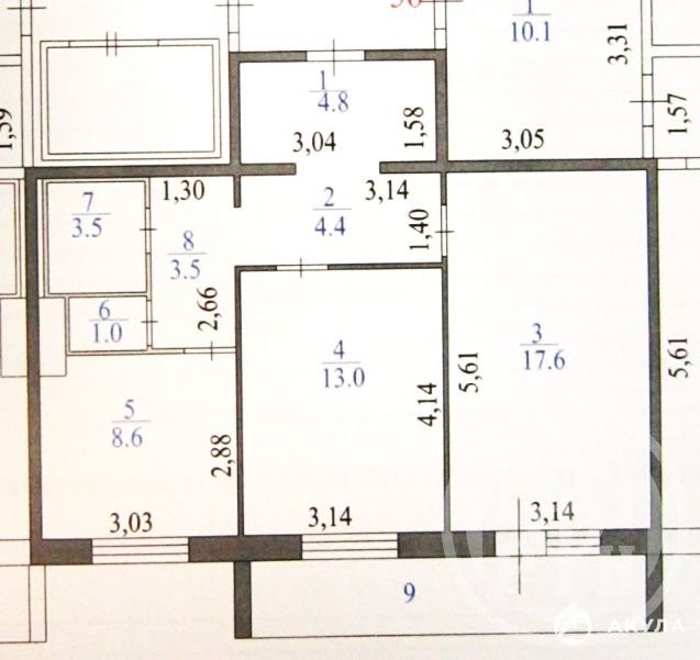 - 8.6 м²