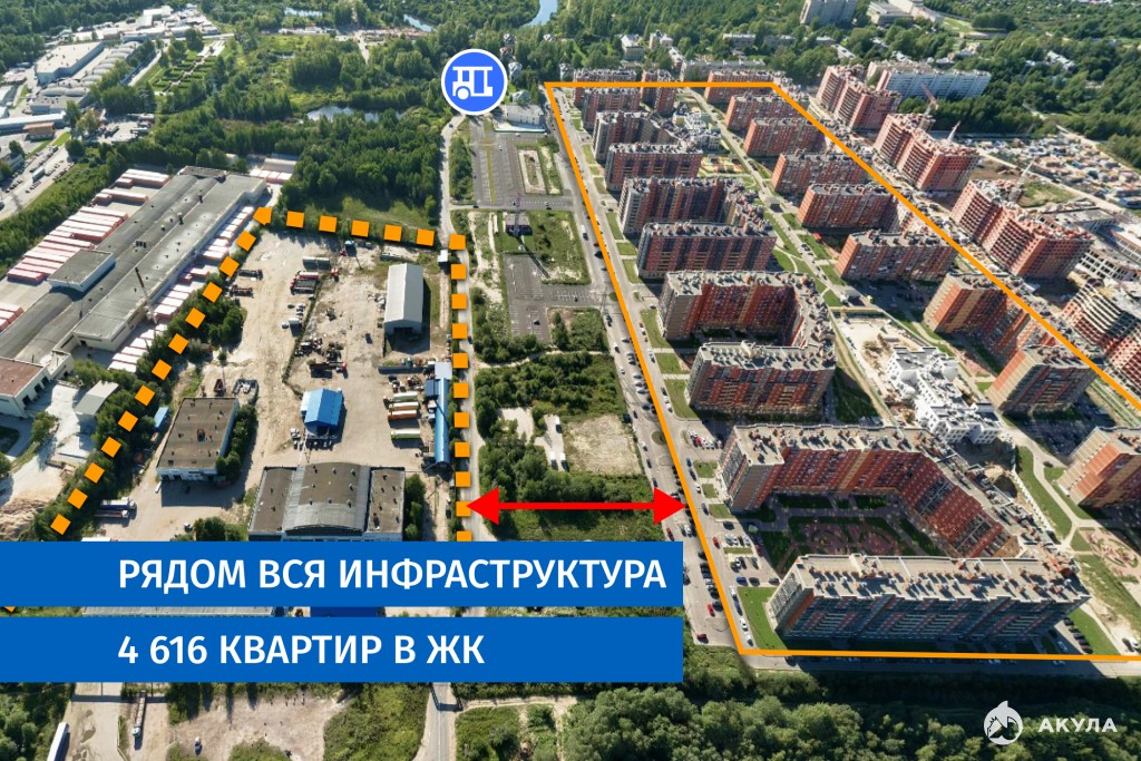 · Через 150 метров крупный жилой комплекс.