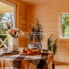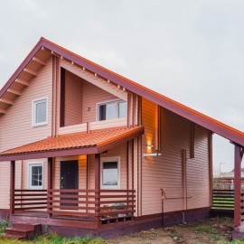 Арт. 92502107. Дом построен из сухого профилированного бруса 70*145, собранный по технологии двойная стена с заполнением теплоизоляционным материалом эковата. Покрашен по финской технологии финской краской Tikkurila. Кровля - металлочерепица, фундамент - свайный с ростверком. Окна...