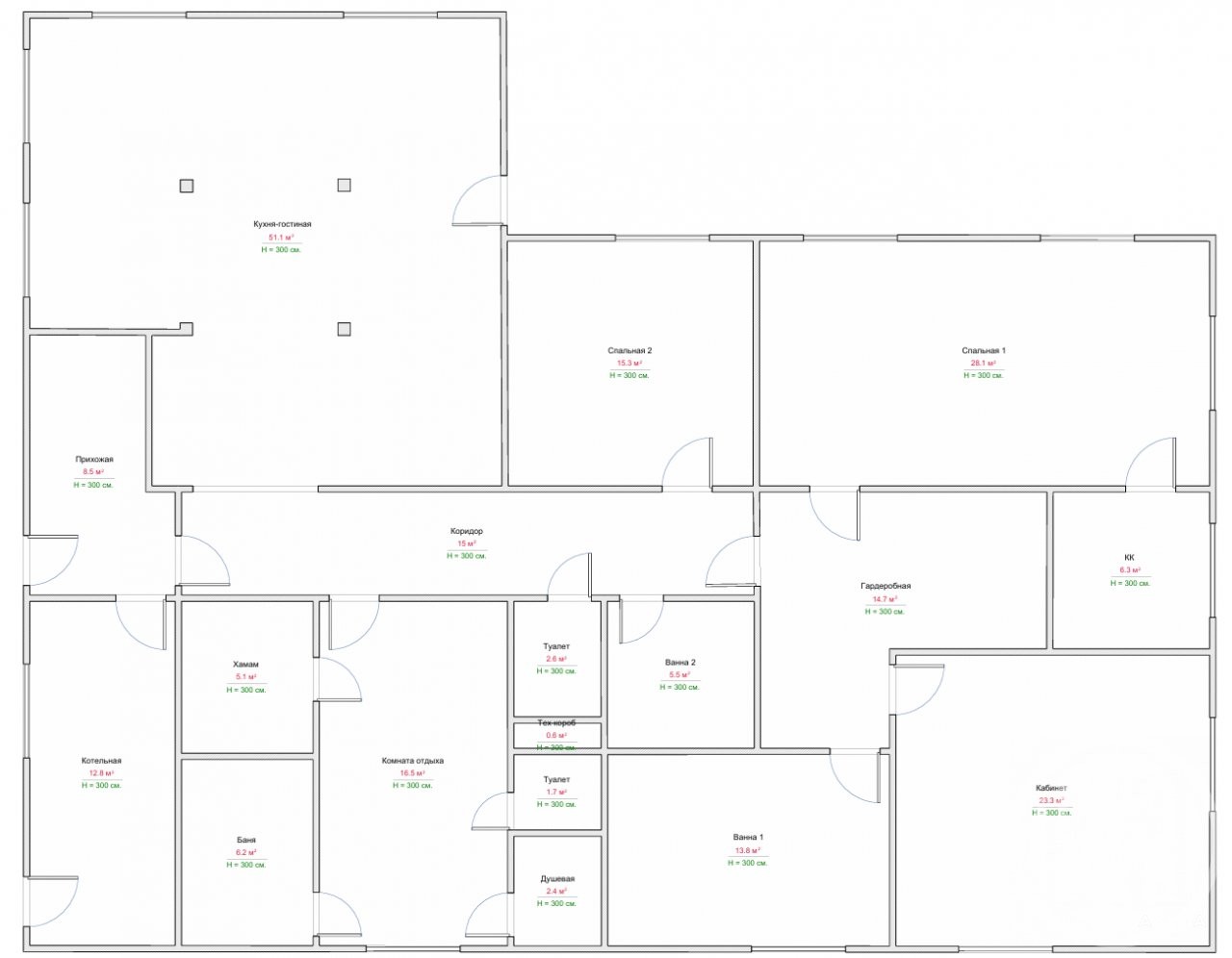 В планировке дома предусмотрены: кухня-гостиная 51 метр, 4 спальни, 4 санузла, хамам, гардеробная, котельная, свободные помещения. Участок 15, 4 сотки, ровный, сухой, хорошей формы, огорожен забором из металлического штакетника на монолитном фундаменте, установлены автоматические ворота.