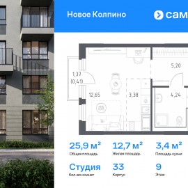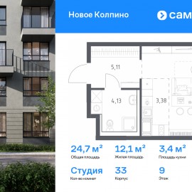 Строим кварталы для жизни с заботой о будущем. Предлагается квартира студия комфорт-класса 24, 7 кв.м в корпусе 33 на 9 этаже, в ЖК «Новое Колпино» Квартира без отделки. Доступность опции «отделка» и возможность комплектации мебелью и декором уточняйте у...