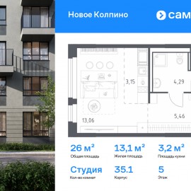 Строим кварталы для жизни с заботой о будущем. Предлагается квартира студия комфорт-класса 26, 89 кв.м в корпусе 35.2 на 9 этаже, в ЖК «Новое Колпино» Квартира без отделки. Доступность опции «отделка» и возможность комплектации мебелью и декором уточняйте у...