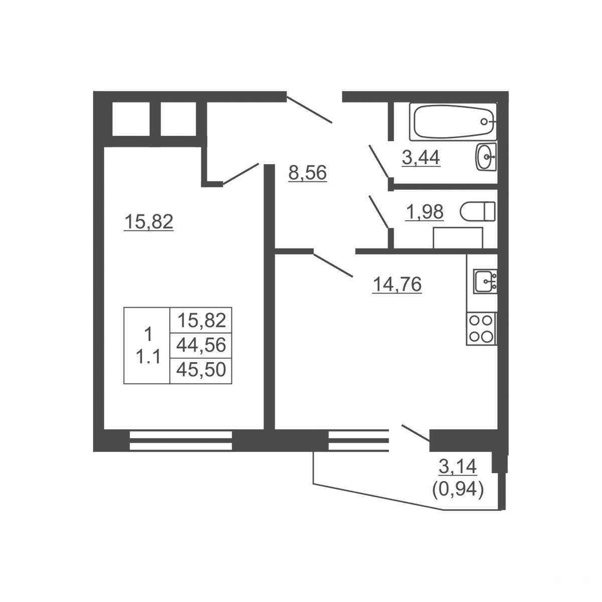Продается однокомнатная квартира в жилом комплексе «Тандем» от ГК СТОУН нa 11 этаже. Общaя площадь cоcтaвляeт 45.50 кв. м.