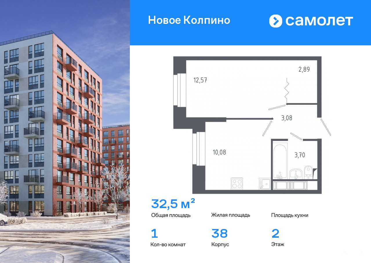Строим кварталы для жизни с заботой о будущем. Предлагается 1-комнатная квартира комфорт-класса 32, 5 кв.м в корпусе 38 на 2 этаже, в ЖК «Новое Колпино»