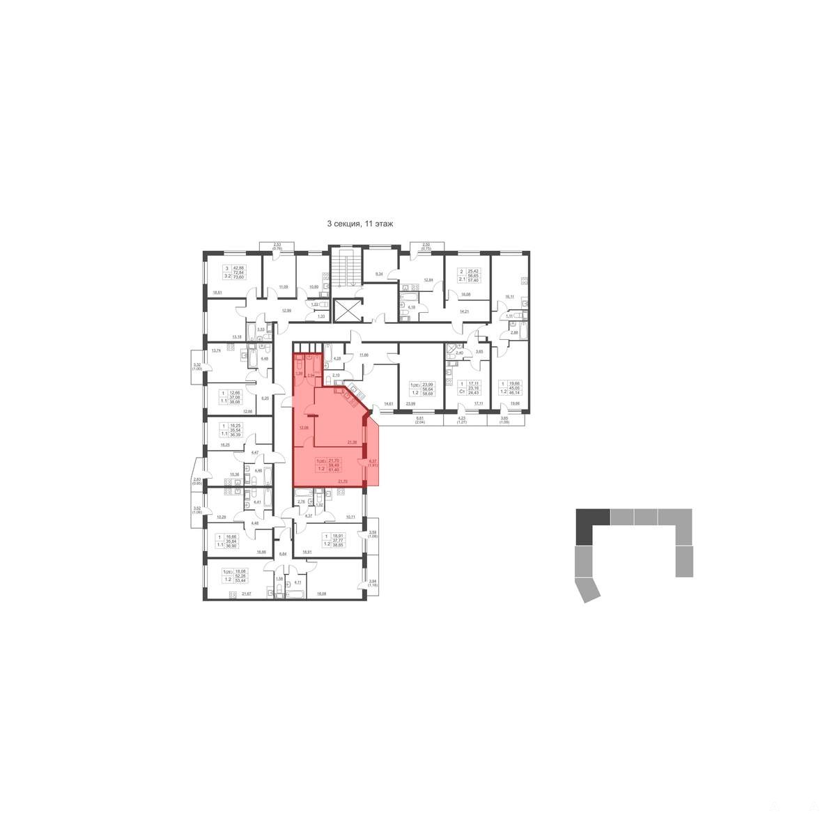 Продается квартира в сданном жилом комплексе на 11 этаже. Общая площадь 59.20 кв. м.