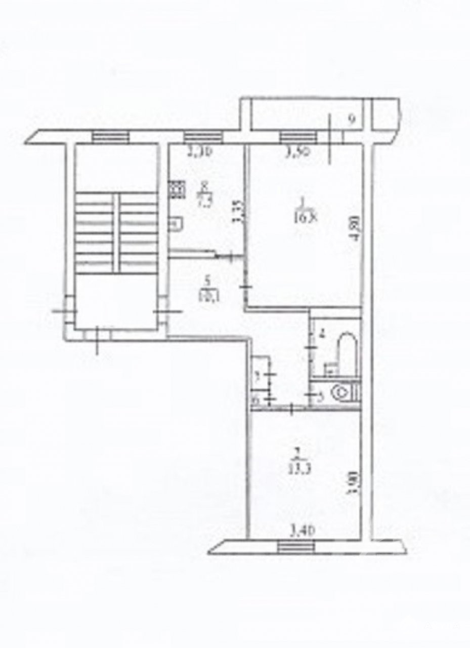 Общая площадь 52, 1 кв.м., жилая 30, 1кв.м., кухня 7, 5кв.м. Комнаты изолированы.