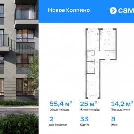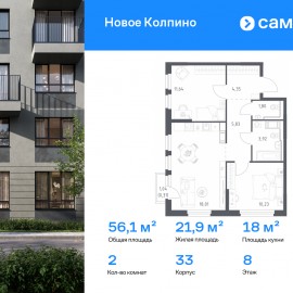 Строим кварталы для жизни с заботой о будущем. Предлагается 2-комнатная квартира комфорт-класса 56, 09 кв.м в корпусе 33 на 8 этаже, в ЖК «Новое Колпино» Квартира с предчистовой отделкой. Доступность дополнительных опций уточняйте у застройщика. Приобрести квартиру возможно...