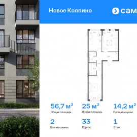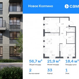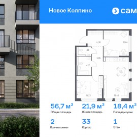 Строим кварталы для жизни с заботой о будущем. Предлагается 2-комнатная квартира комфорт-класса 56, 67 кв.м в корпусе 33 на 1 этаже, в ЖК «Новое Колпино» Квартира с чистовой отделкой. Доступность дополнительных опций уточняйте у застройщика. Приобрести квартиру возможно по...