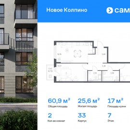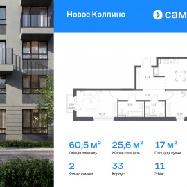 Строим кварталы для жизни с заботой о будущем. Предлагается 2-комнатная квартира комфорт-класса 60, 46 кв.м в корпусе 33 на 11 этаже, в ЖК «Новое Колпино» Квартира с предчистовой отделкой. Доступность дополнительных опций уточняйте у застройщика. Приобрести квартиру возможно...