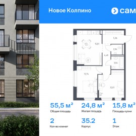 Строим кварталы для жизни с заботой о будущем. Предлагается 2-комнатная квартира комфорт-класса 55, 48 кв.м в корпусе 35.2 на 1 этаже, в ЖК «Новое Колпино» Квартира без отделки. Доступность опции «отделка» и возможность комплектации мебелью и декором уточняйте у...