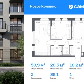 Строим кварталы для жизни с заботой о будущем. Предлагается 2-комнатная квартира комфорт-класса 59, 9 кв.м в корпусе 35.1 на 1 этаже, в ЖК «Новое Колпино» Квартира с чистовой отделкой. Доступность дополнительных опций уточняйте у застройщика. Приобрести квартиру возможно по...