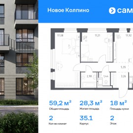 Строим кварталы для жизни с заботой о будущем. Предлагается 2-комнатная квартира комфорт-класса 59, 24 кв.м в корпусе 35.1 на 2 этаже, в ЖК «Новое Колпино» Квартира с чистовой отделкой. Доступность дополнительных опций уточняйте у застройщика. Приобрести квартиру возможно по...