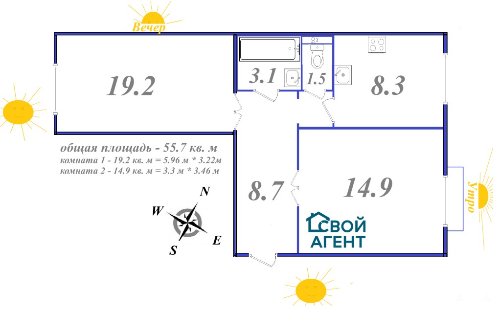 - 56 м²