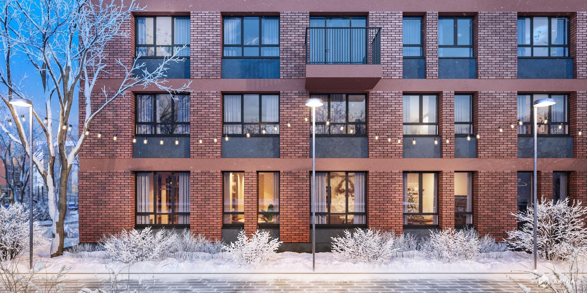 Корпуса высотой 11 этажей с французскими и панорамными балконами отделаны штукатуркой и облицовочным кирпичом. Вдохновение для палитры нам подарили оттенки рассветного неба: терракотовый, персиковый, песочный.