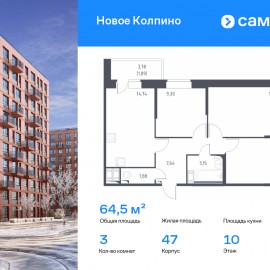 Строим кварталы для жизни с заботой о будущем. Предлагается 3-комнатная квартира комфорт-класса 64, 5 кв.м в корпусе 47 на 10 этаже, в ЖК «Новое Колпино» Квартира с чистовой отделкой. Доступность дополнительных опций уточняйте у застройщика. Приобрести квартиру возможно по...